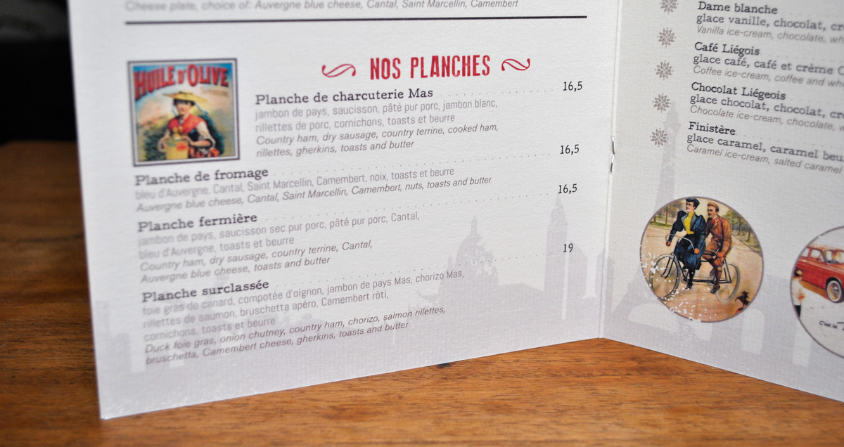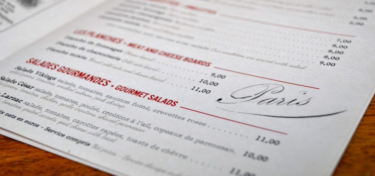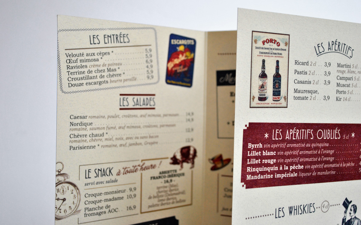 Cartes de restaurant diverses Bars / Restaurants, Identité Cartes de restaurant diverses réalisées chez Menus&Services.