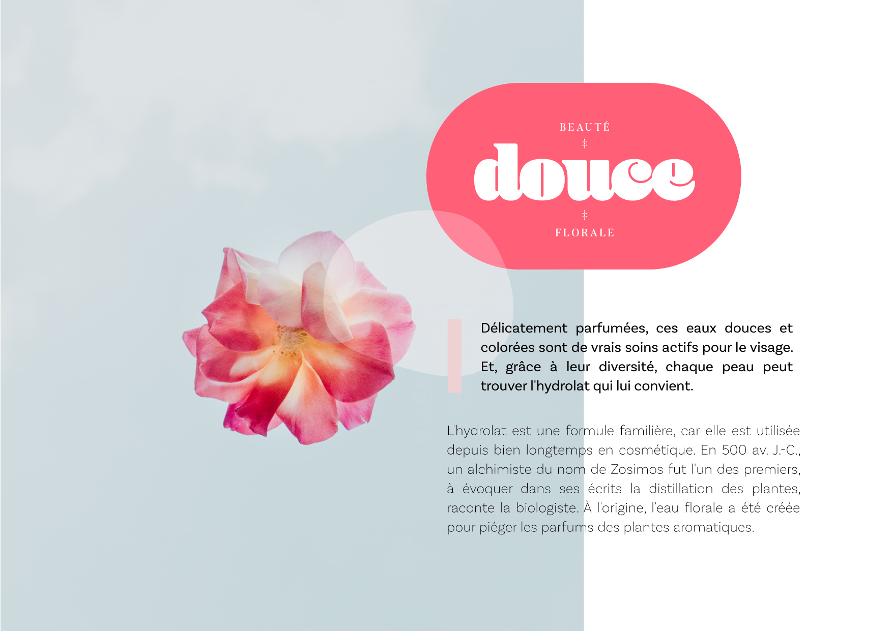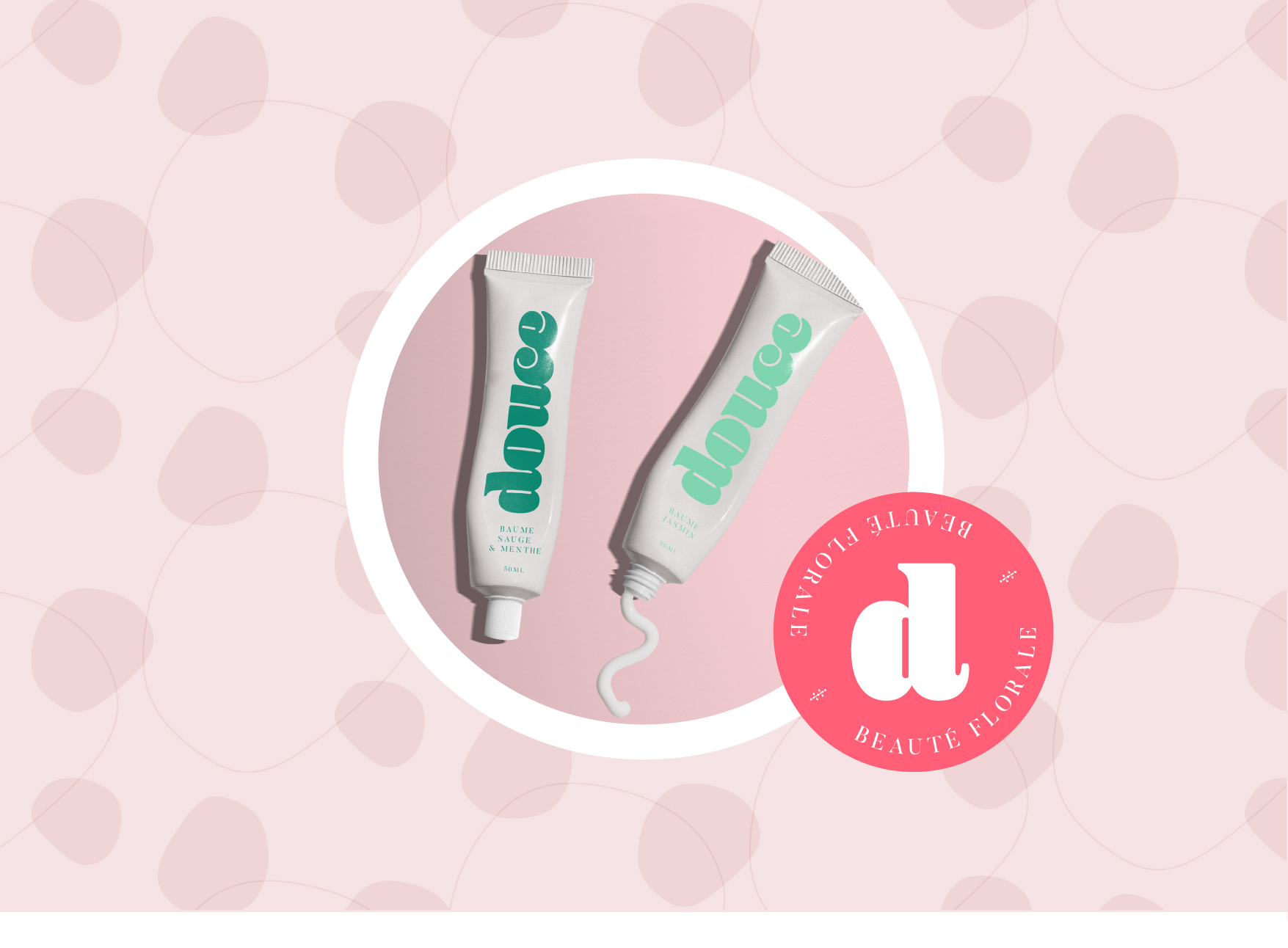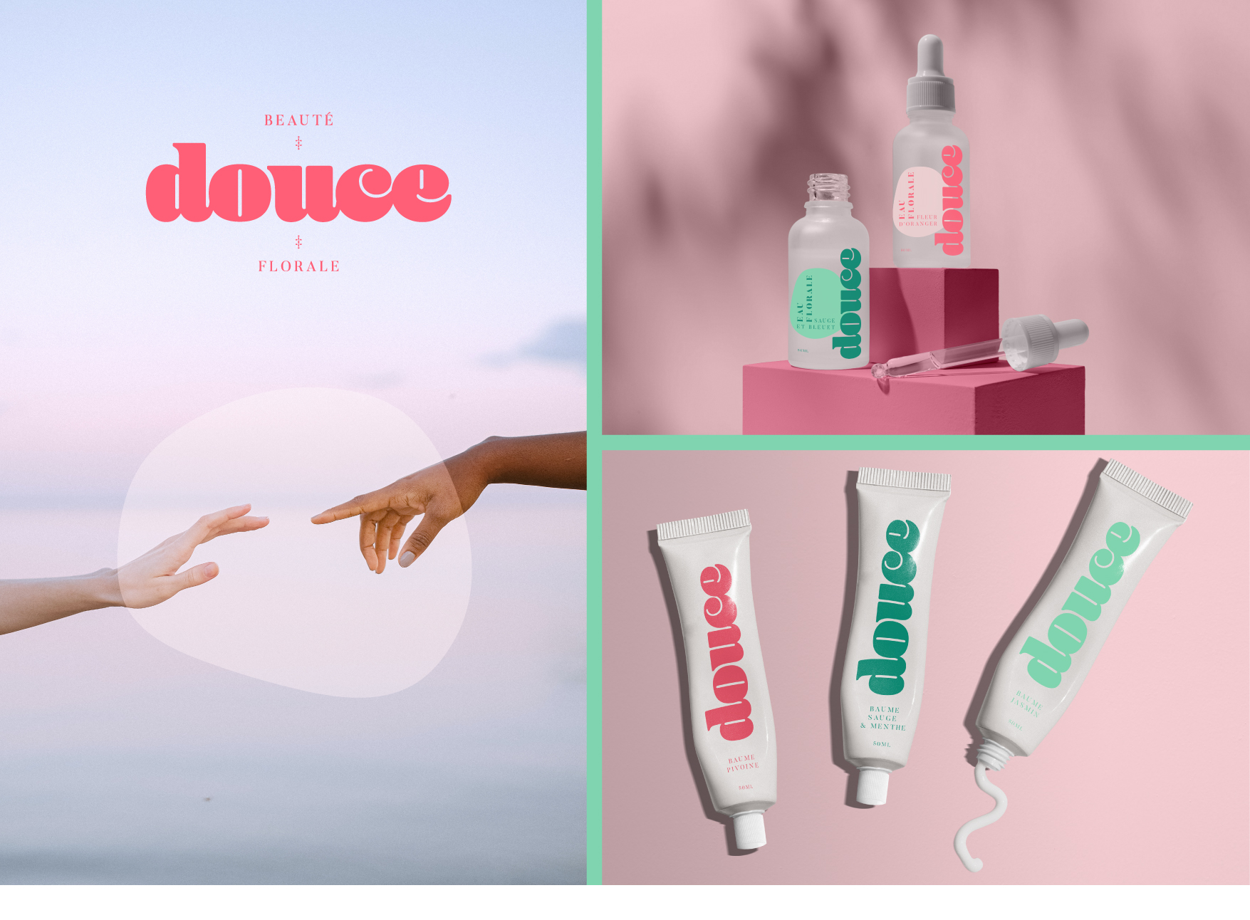 Douce – Identité visuelle Identité, Packaging Création graphique d’identité visuelle pour un projet personnel de cosmétique. Logo, charte graphique, packaging. Novembre 2022