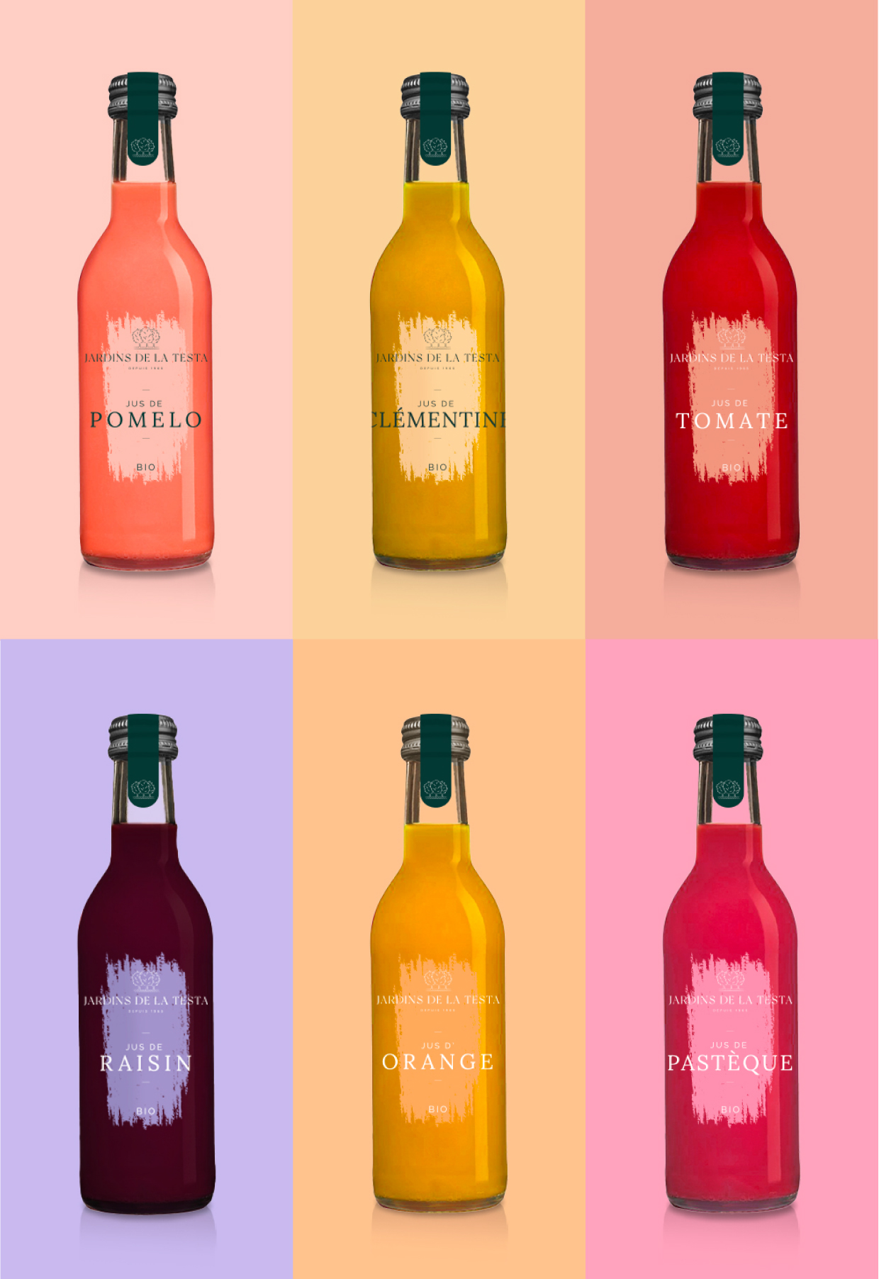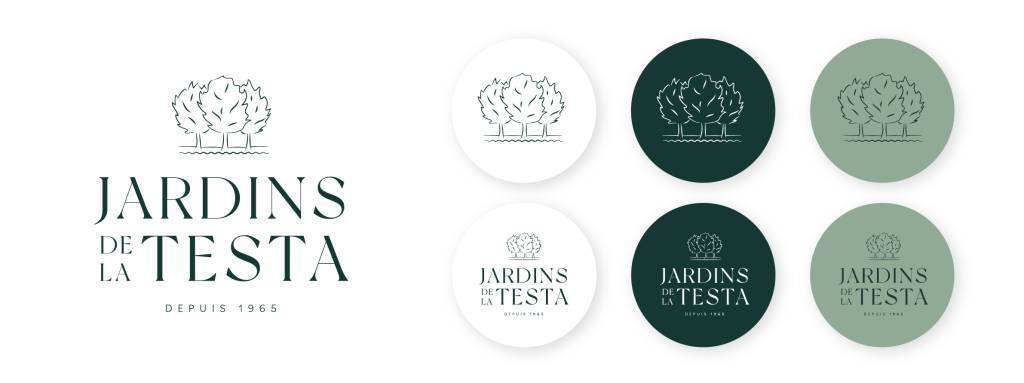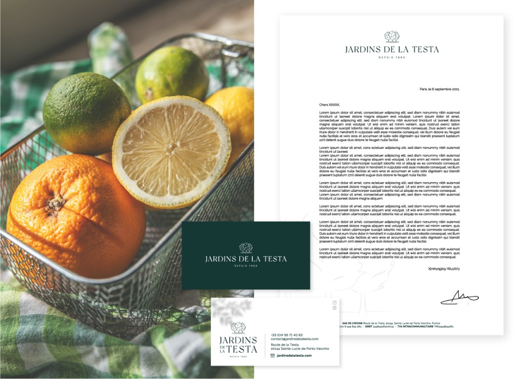 Création du logo et de la charte graphique des Jardins de la Testa, un verger corse bio, authentique et premium.