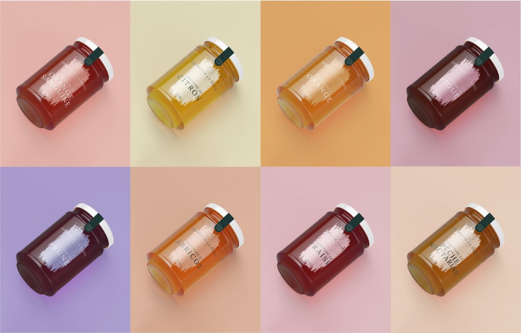 • étiquettes de confitures, sauces, jus et glaces