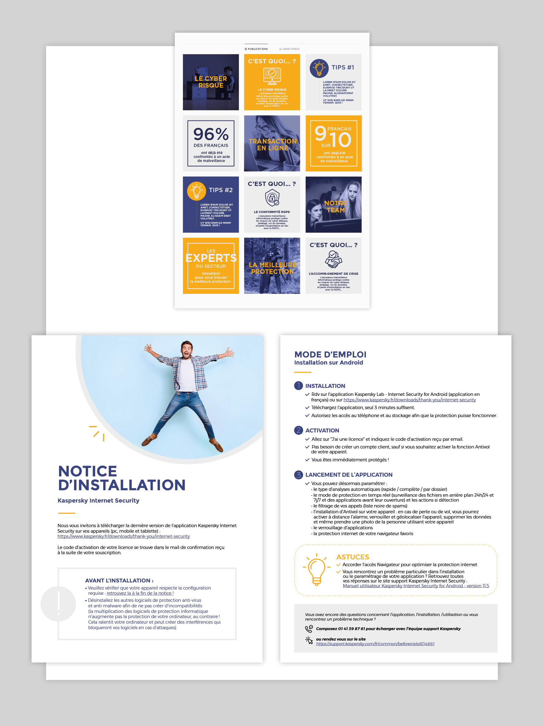 - Web : charte Instagram, visuels LinkedIn, Facebook, éléments pour le site web, CGV, email, notice d’utilisation, présentations clients